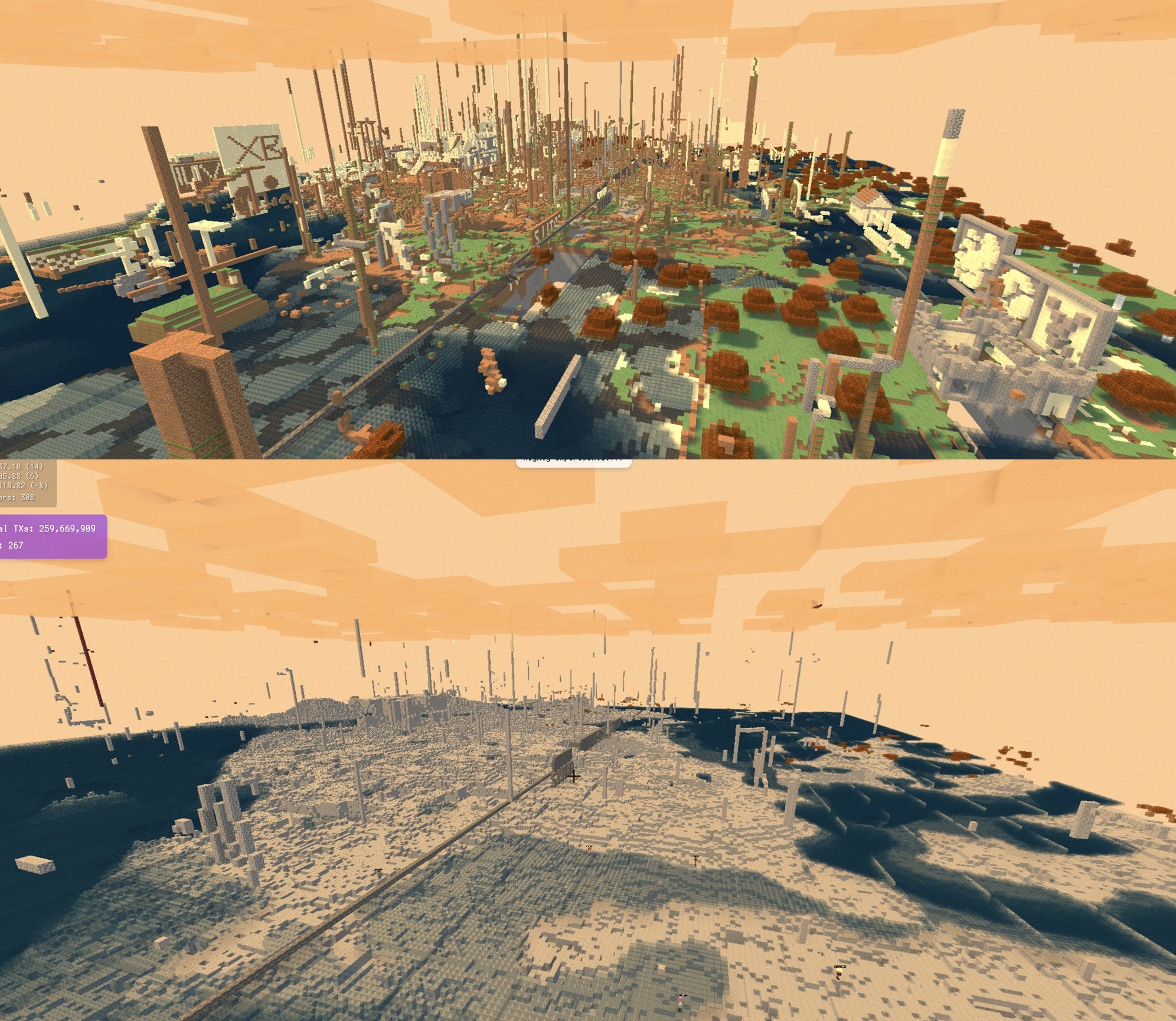 Chunked is a fascinating experiment that really taught our teams a lot about how people interact with the blockchain, and perhaps something deeper about the world we live in. Once certain incentives were introduced to the world of Chunked, the Somniacs got busy with mining and within just a few days the entire world was turned into a dystopian wasteland, with every nearly block of dirt mined.