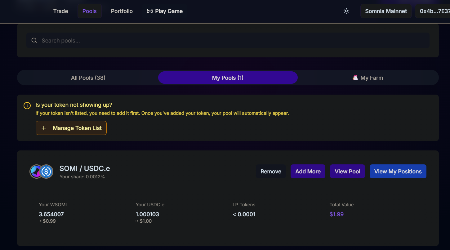 In addition to trading fees, you’ll also be earning points for the Somnia Liquidity Points Program.